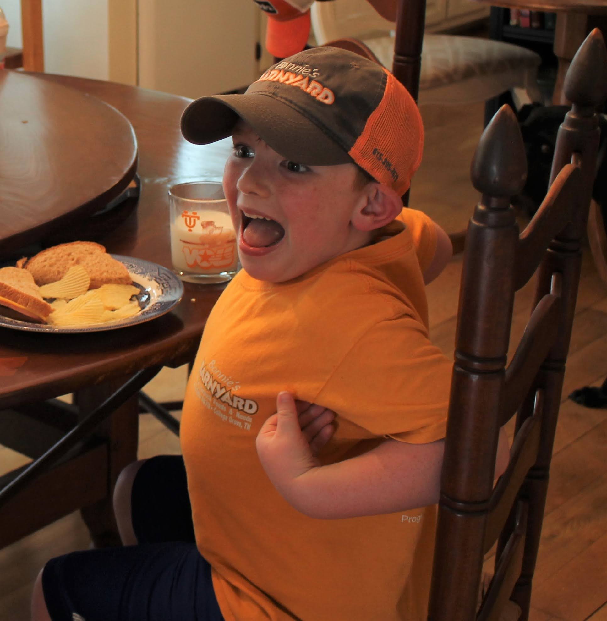 Mike said he was ready for some lunch, so everybody piled into the kitchen. Quickly, Mike and I became a bit like short-order cooks. One wanted a "baloney samwich" and one wanted a peanut butter and jelly one.